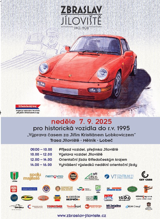 plakat Výstava vozidel a orientační jízda Středočeským krajem start a cíl v Jílovišti v neděli 7. září 2025.